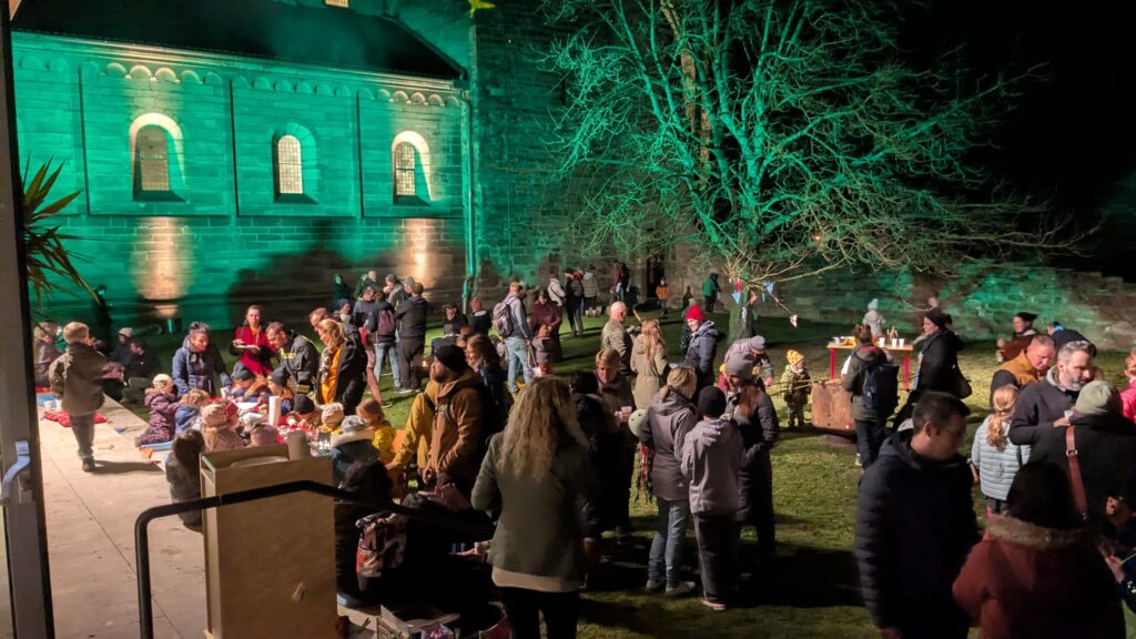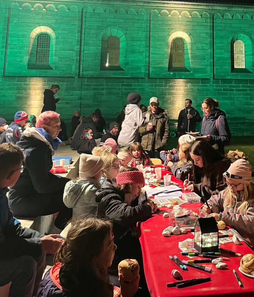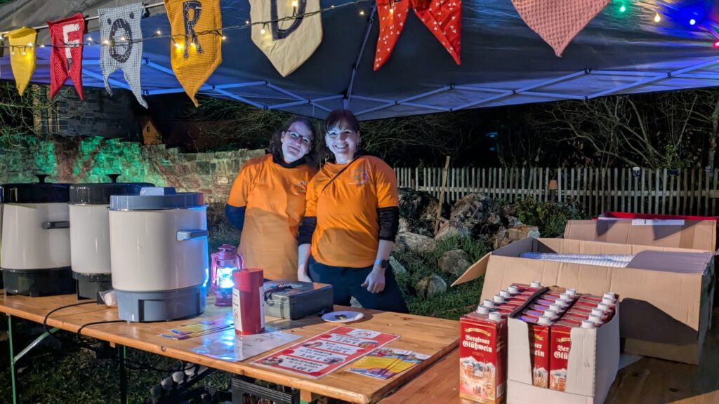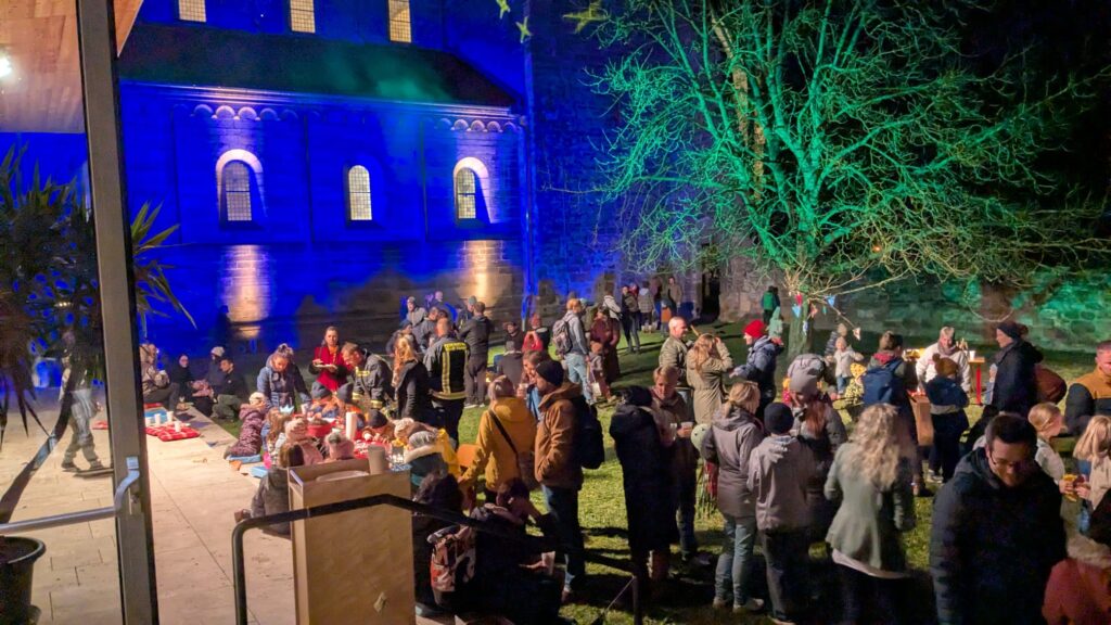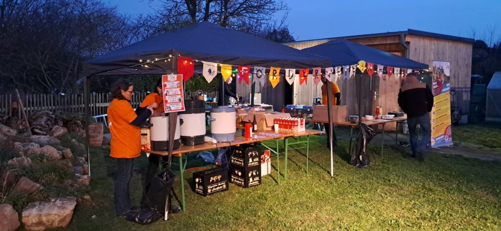 Im sanften Schein der beleuchteten Klosterkirche lud der Klostergarten zum Verweilen ein: Duftende Waffeln, heiße Getränke und Herzhaftes vom Grill sorgten für wohlige Wärme und gesellige Stimmung. Die Schüler des Sekundarbereichs der TGS Bürgel unterstützten tatkräftig und trugen zum Gelingen des Abends bei. Erstmals durften wir hier voller Stolz unseren Stand mit der wundervollen neuen Wimpelkette dekorieren – liebevoll gestaltet von den kreativen Schülerinnen und Schülern der TGS unter der engagierten Anleitung ihrer Lehrkraft. Ein großes Dankeschön an allen Beteiligten für dieses farbenfrohe Schmuckstück!