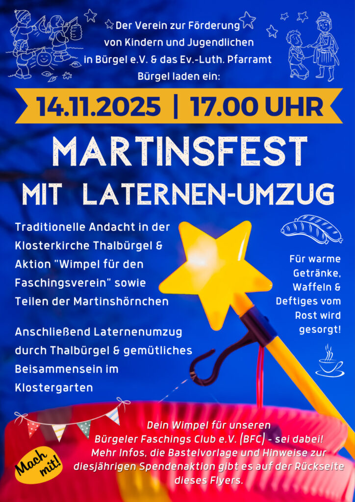 Im Melanchthonhaus warteten Stationen des Ev.-Luth. Pfarramtes Bürgel auf die Kinder, während über den knisternden Feuerschalen Stockbrot gebacken wurde. Auch die Aktion „Wimpel für den Faschingsverein“ fand großen Anklang und wurde mit viel Engagement unterstützt. Voraussichtlich zu Beginn des neuen Jahres möchten wir aus den einzelnen Wimpeln bunte Ketten entstehen lassen. Wer Interesse hat, uns dabei zu unterstützen, meldet sich gern – den genauen Termin teilen wir euch rechtzeitig mit.